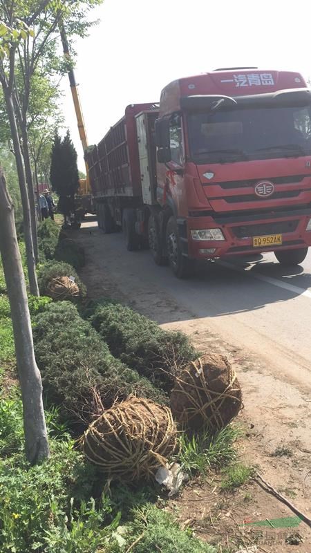 发往山东省青岛市客户订购蜀桧4米高60公分土球500棵,精挑细选以后4米高蜀桧工人现挖,运到路上集中地,吊车将蜀桧吊到十三米车上,整车500棵装完,按照我县园林*安排检验检疫以后顺利发车。