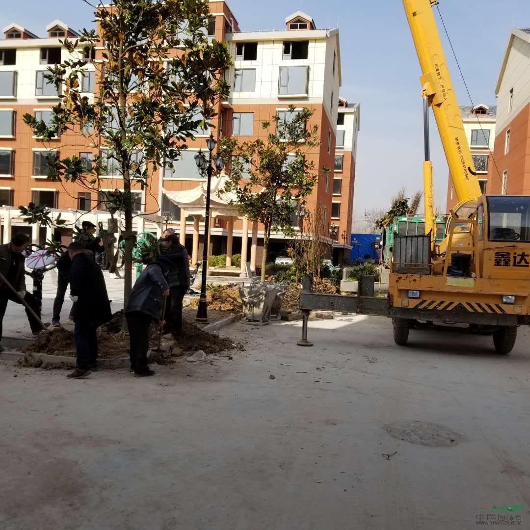2018年12月5日在山东省菏泽市 华润万家小区种植绿化苗木;广玉兰,紫薇 ,大叶黄杨球,瓜子黄杨球,小叶女贞球,小叶女贞球,棕榈,紫叶小檗,金叶女贞苗,果岭草草坪等,,